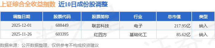 近10日内上证综合全收益(000888)指数成份股做了调整,新纳入了2只股票。