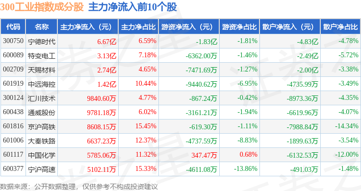 资金流向方面,300工业(000910)指数成份股当日主力资金净流出合计11.73亿元,游资资金净流入合计4.77亿元,散户资金净流入合计6.96亿元。成份股资金流向详情见下表: