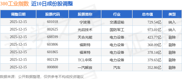 近10日内300工业(000910)指数成份股做了调整,新纳入了2只股票,剔除了5只股票。