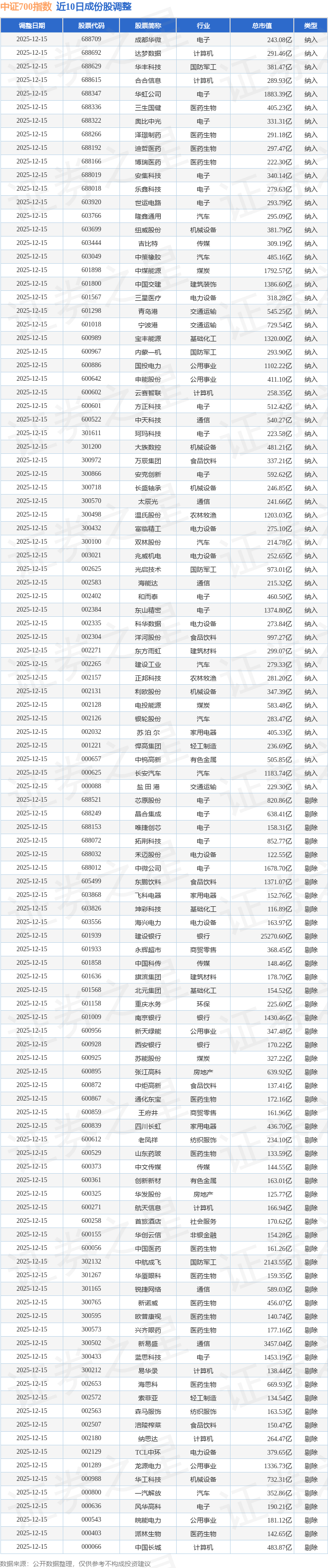 近10日内中证700(000907)指数成份股做了调整,新纳入了56只股票,剔除了56只股票。