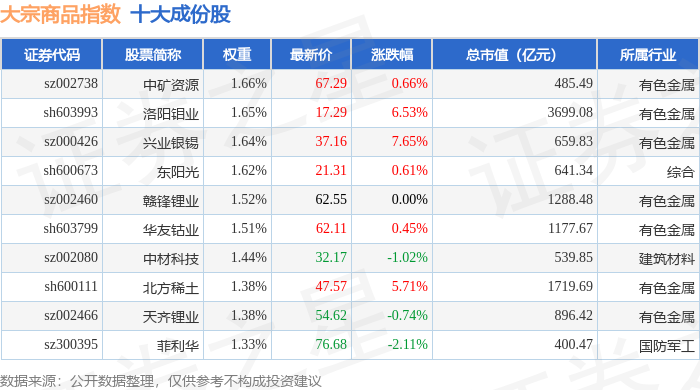 近10日内大宗商品(000979)指数成份股做了调整,新纳入了3只股票,剔除了3只股票。