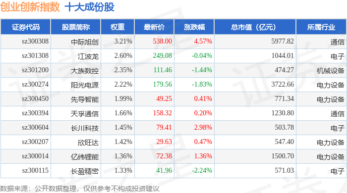 证券之星消息,12月1日,创业创新(399018)指数报收于5668.36点,涨1.03%,成交1181.19亿元,换手率3.02%。当日该指数成份股中,上涨的有70家,广和通以20.01%的涨幅领涨,下跌的有29家,迈为股份以4.7%的跌幅领跌。