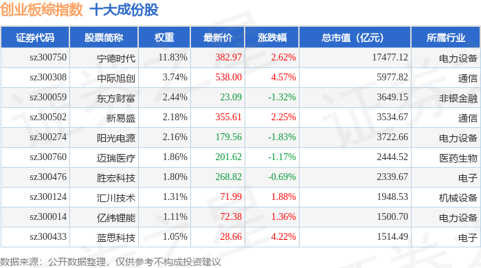 创业板综(399102)指数十大成份股详情如下:
