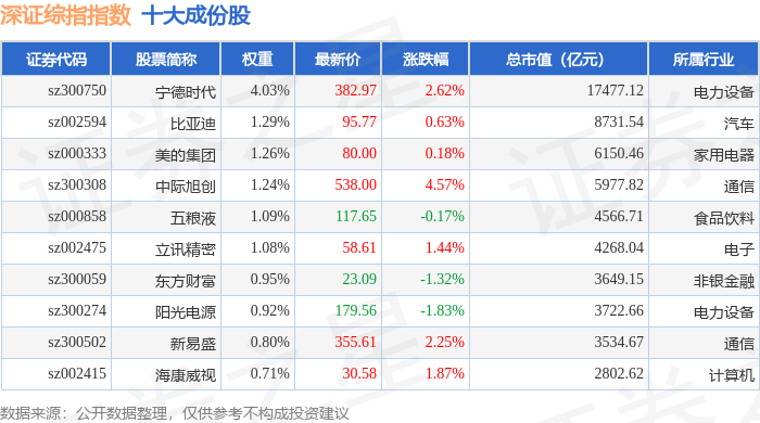 深证综指(399106)指数十大成份股详情如下: