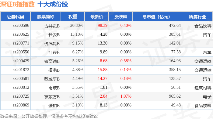 资金流向方面,深证B指(399108)指数成份股当日主力资金净流出合计270.15万元,游资资金净流入合计219.91万元,散户资金净流入合计50.24万元。成份股资金流向详情见下表: