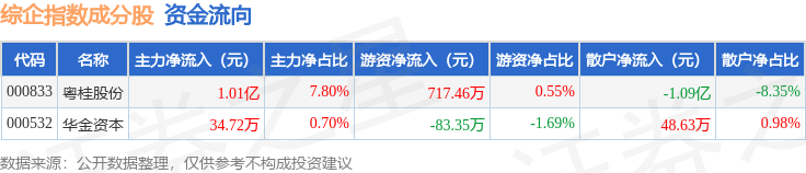 资金流向方面,综企指数(399249)成份股当日主力资金净流入合计1.02亿元,游资资金净流入合计634.11万元,散户资金净流出合计1.08亿元。成份股资金流向详情见下表: