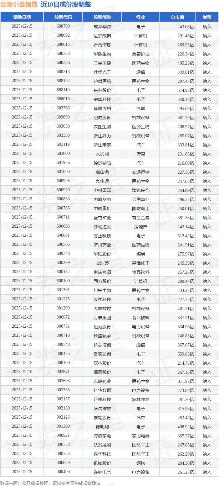 近10日内巨潮小盘(399316)指数成份股做了调整,新纳入了50只股票。