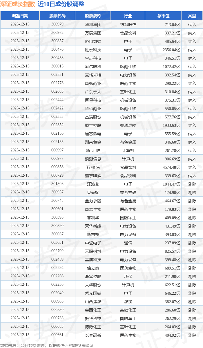 近10日内深证成长(399346)指数成份股做了调整,新纳入了19只股票,剔除了19只股票。
