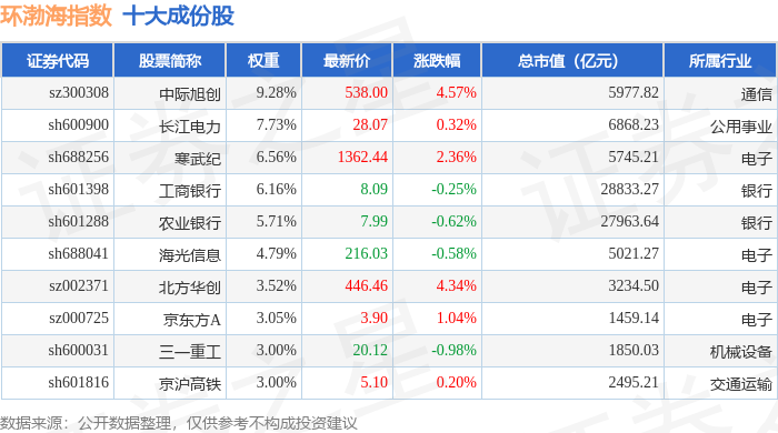 证券之星消息,12月1日,环渤海(399357)指数报收于3582.26点,涨1.15%,成交813.57亿元,换手率0.25%。当日该指数成份股中,上涨的有30家,中国中免以6.87%的涨幅领涨,下跌的有9家,中国人保以4.97%的跌幅领跌。