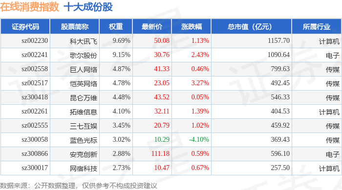 近10日内在线消费(399361)指数成份股做了调整,新纳入了1只股票。