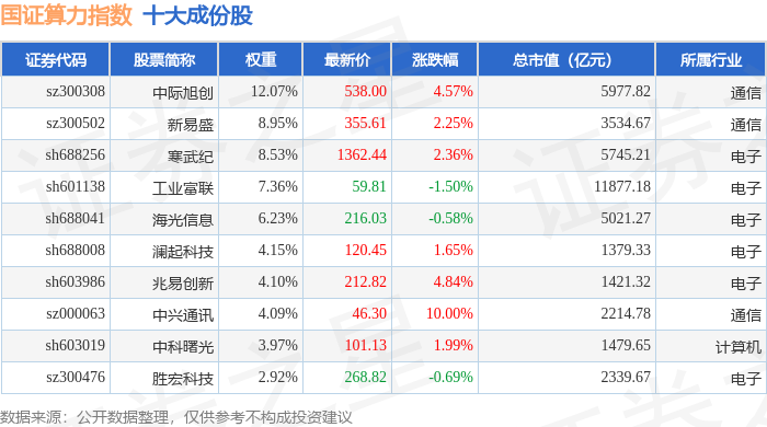 近10日内国证算力(399363)指数成份股做了调整,新纳入了1只股票。