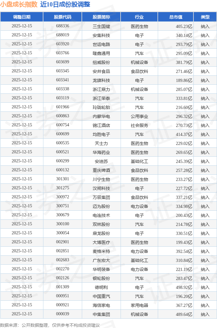 近10日内小盘成长(399376)指数成份股做了调整,新纳入了33只股票。