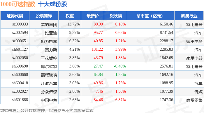 1000可选(399384)指数十大成份股详情如下: