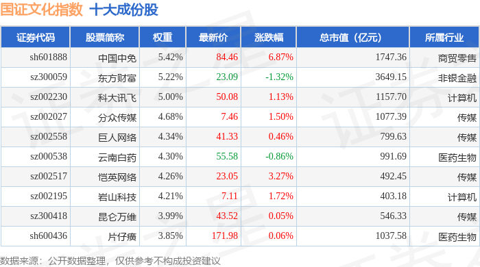 近10日内国证文化(399397)指数成份股做了调整,新纳入了1只股票。