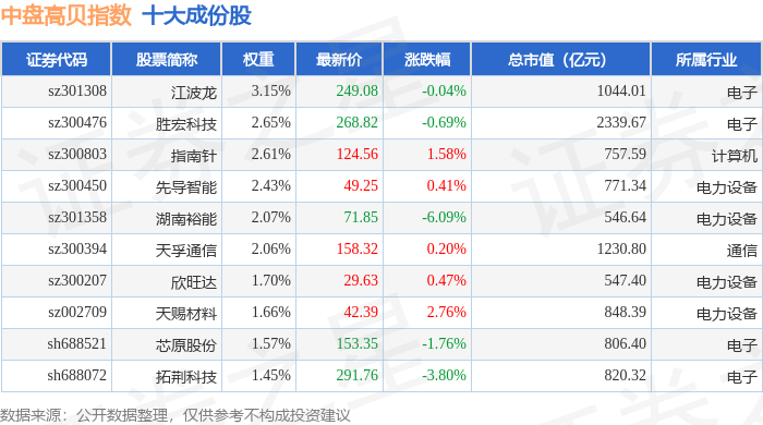 近10日内中盘高贝(399407)指数成份股做了调整,新纳入了32只股票。
