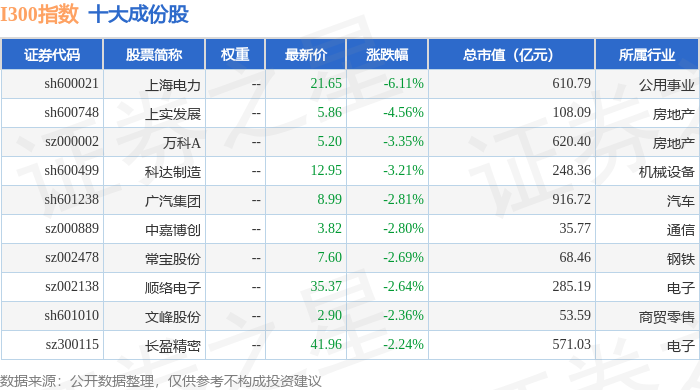 I300(399416)指数十大成份股详情如下: