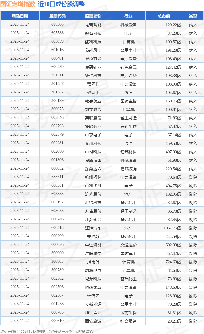 近10日内国证定增(399428)指数成份股做了调整,新纳入了18只股票,剔除了18只股票。