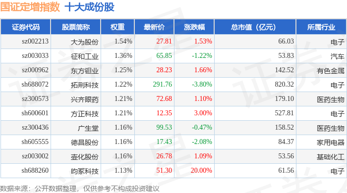 证券之星消息,12月1日,国证定增(399428)指数报收于4150.4点,涨1.08%,成交492.57亿元,换手率2.85%。当日该指数成份股中,上涨的有65家,昀冢科技以20.0%的涨幅领涨,下跌的有34家,惠城环保以11.4%的跌幅领跌。