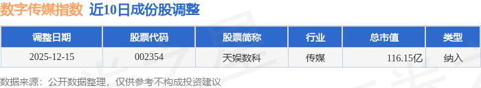 近10日内数字传媒(399434)指数成份股做了调整,新纳入了1只股票。