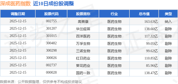 近10日内深成医药(399685)指数成份股做了调整,新纳入了1只股票,剔除了7只股票。