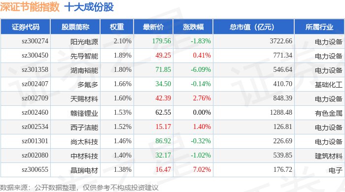 深证节能(399695)指数十大成份股详情如下: