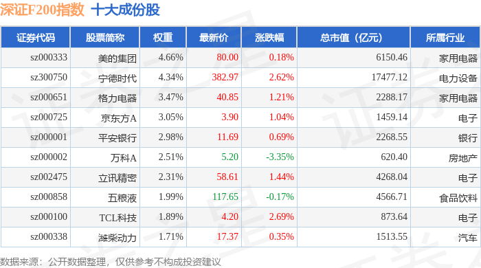 证券之星消息,12月1日,深证F200(399703)指数报收于7487.18点,涨1.01%,成交2249.85亿元,换手率1.3%。当日该指数成份股中,上涨的有145家,森马服饰以10.05%的涨幅领涨,下跌的有45家,湖南裕能以6.09%的跌幅领跌。