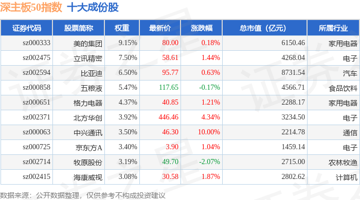 证券之星消息,12月1日,深主板50(399750)指数报收于9000.95点,涨1.19%,成交772.52亿元,换手率1.06%。当日该指数成份股中,上涨的有37家,中兴通讯以10.0%的涨幅领涨,下跌的有12家,万科A以3.35%的跌幅领跌。