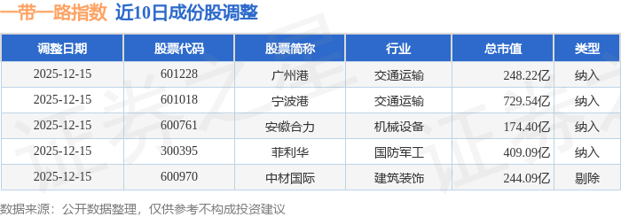 近10日内一带一路(399991)指数成份股做了调整,新纳入了4只股票,剔除了1只股票。