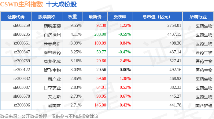 证券之星消息,12月1日,CSWD生科(399993)指数报收于2726.81点,涨0.25%,成交166.29亿元,换手率1.18%。当日该指数成份股中,上涨的有44家,九强生物以4.43%的涨幅领涨,下跌的有52家,百普赛斯以3.65%的跌幅领跌。