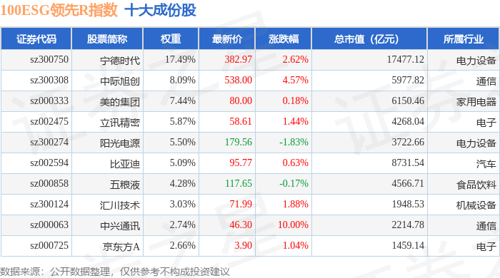 证券之星消息,12月1日,100ESG领先R(470030)指数报收于9181.79点,涨1.53%,成交1227.64亿元,换手率1.19%。当日该指数成份股中,上涨的有36家,中兴通讯以10.0%的涨幅领涨,下跌的有11家,万科A以3.35%的跌幅领跌。