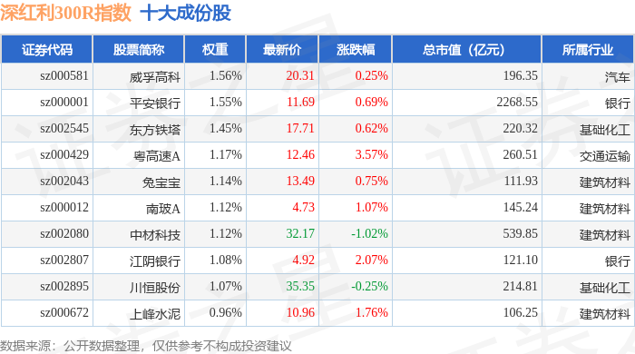 深红利300R(470062)指数十大成份股详情如下: