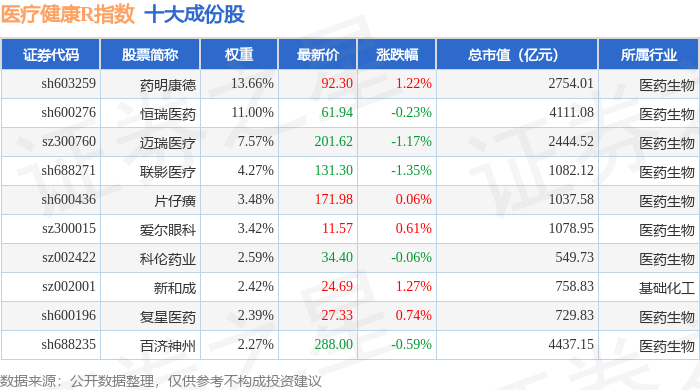 近10日内医疗健康R(480016)指数成份股做了调整,新纳入了4只股票,剔除了1只股票。
