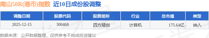 近10日内南山50R(港币)(480024)指数成份股做了调整,新纳入了1只股票。