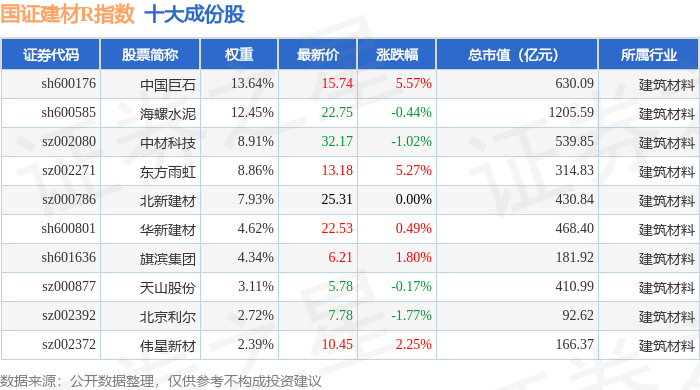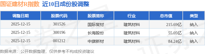 近10日内国证建材R(480048)指数成份股做了调整,新纳入了3只股票。