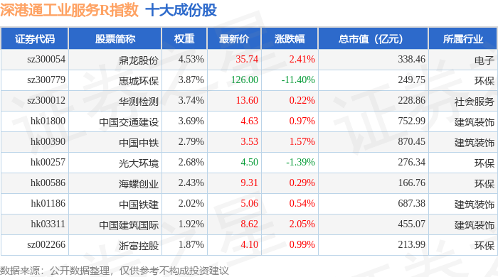 深港通工业服务R(483055)指数十大成份股详情如下: