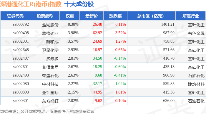 深港通化工R(港币)(483064)指数十大成份股详情如下: