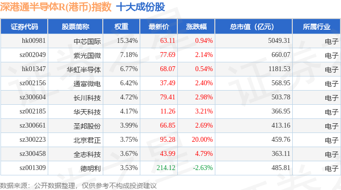 深港通半导体R(港币)(483068)指数十大成份股详情如下: