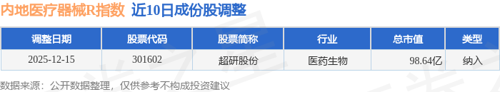近10日内内地医疗器械R(483103)指数成份股做了调整,新纳入了1只股票。