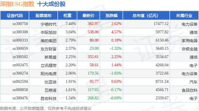 深指ESG(970026)指数十大成份股详情如下: