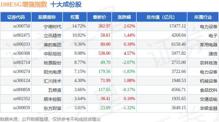 近10日内100ESG增强(970033)指数成份股做了调整,新纳入了6只股票,剔除了6只股票。