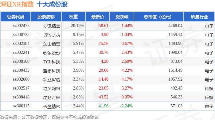 证券之星消息,12月1日,深证XR(970046)指数报收于2215.4点,涨2.03%,成交721.74亿元,换手率2.73%。当日该指数成份股中,上涨的有44家,鹏鼎控股以9.99%的涨幅领涨,下跌的有5家,长盈精密以2.24%的跌幅领跌。
