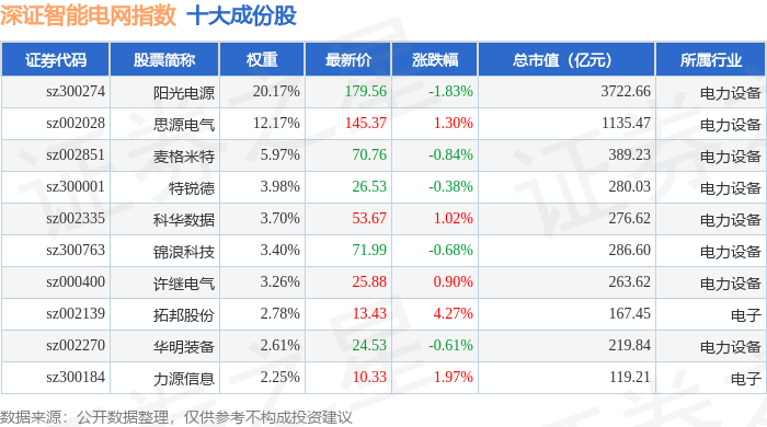 深证智能电网(970054)指数十大成份股详情如下: