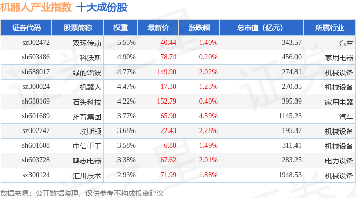 近10日内机器人产业(980022)指数成份股做了调整,新纳入了5只股票。