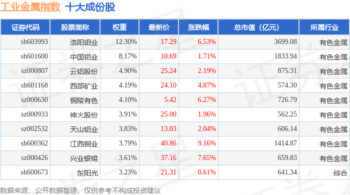 近10日内工业金属(980043)指数成份股做了调整,新纳入了2只股票,剔除了1只股票。