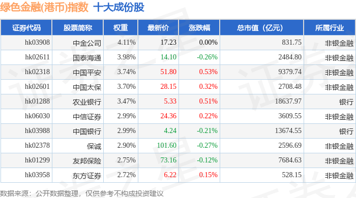 绿色金融(港币)(980053)指数十大成份股详情如下: