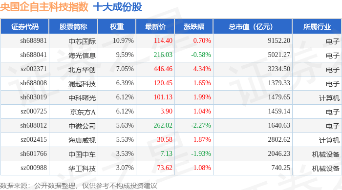 近10日内央国企自主科技(980083)指数成份股做了调整,新纳入了5只股票。