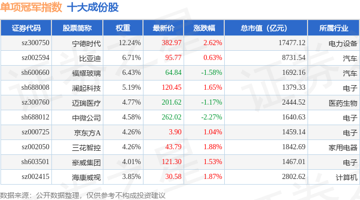 近10日内单项冠军(980150)指数成份股做了调整,新纳入了5只股票。