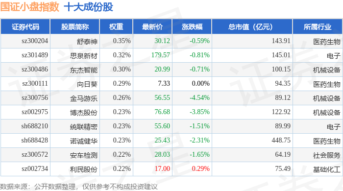 证券之星消息,12月1日,国证小盘(980202)指数报收于1766.66点,涨0.35%,成交1861.24亿元,换手率3.73%。当日该指数成份股中,上涨的有862家,华融化学以20.01%的涨幅领涨,下跌的有595家,爱科赛博以17.28%的跌幅领跌。