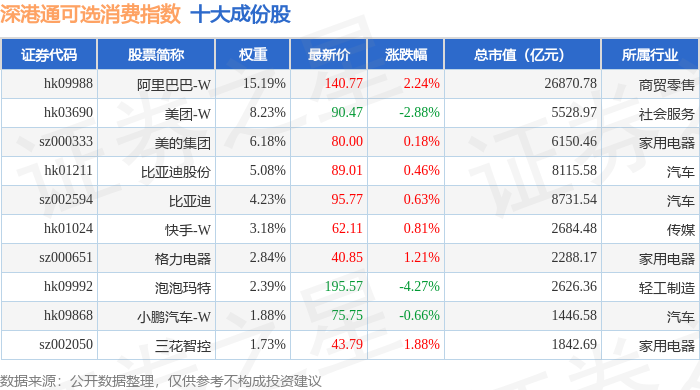 证券之星消息,12月1日,深港通可选消费(983019)指数报收于5727.14点,涨0.3%,成交1347.72亿元,换手率1.89%。当日该指数成份股中,上涨的有201家,森马服饰以10.05%的涨幅领涨,下跌的有102家,狮腾控股以10.88%的跌幅领跌。