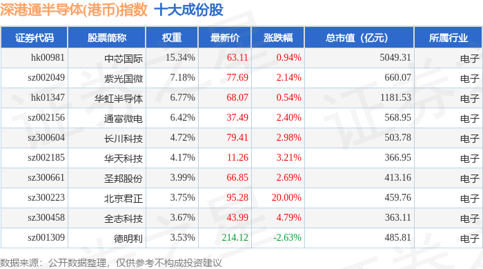 深港通半导体(港币)(983068)指数十大成份股详情如下: